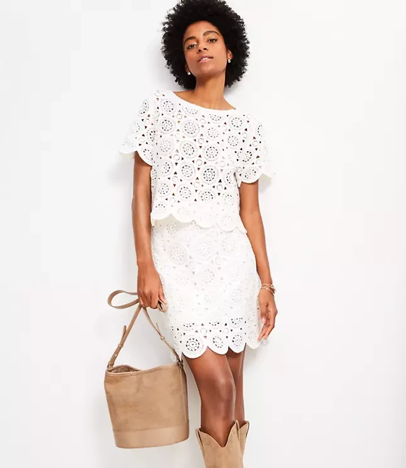 Medallion Crochet Mini Sweater Skirt in Bloomington, MN