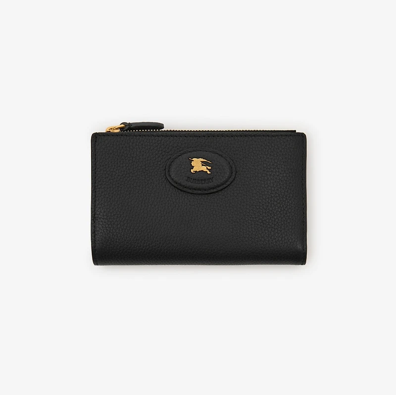 A slim wallet made from grainy calf leather, lined with a Burberry Check cotton linen blend in signature sand beige. The Bloomsbury collection is finished with a leather and metal Knight stamp, an archival motif first seen on Burberry bags in the 1980s. Press-stud closure 10 card slots Zip compartment Note compartment Two interior slip pockets Hand-painted edges Brushed metal hardware Leather patch with Equestrian Knight Design at front Embossed Burberry lettering at inner Comes with a dust bag