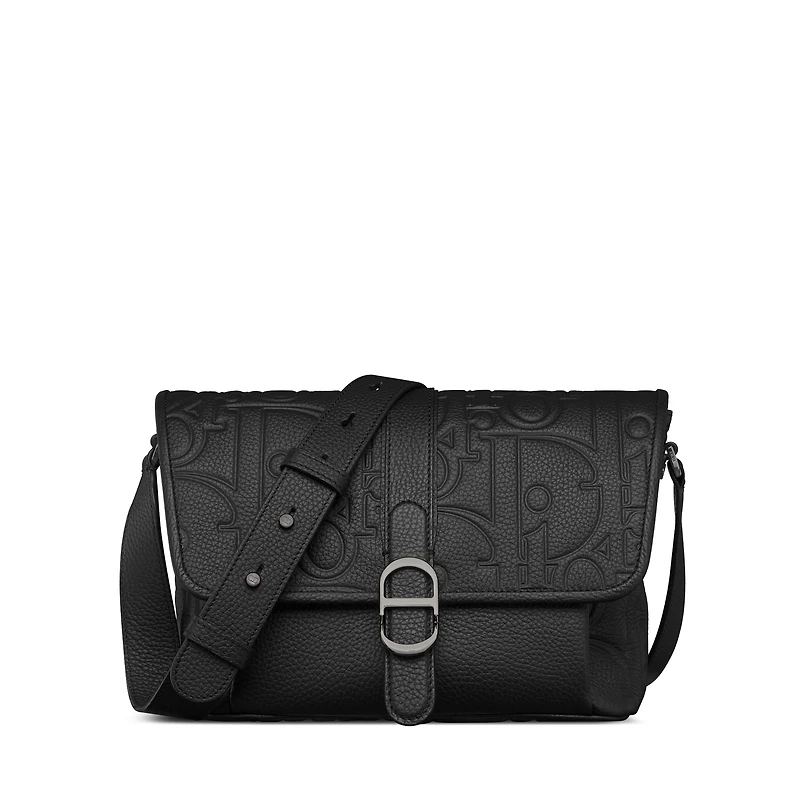 New for Fall 2025, the Dior Daily messenger bag with flap is both elegant and practical. It is made in navy blue Dior Gravity Outline leather, a grained calfskin embossed with the iconic House motif for a 3D effect with graphic appeal. The flap, adorned with a magnetic Dior Daily buckle in a rework of the CD initials, opens to reveal a spacious compartment. A zip pocket on the back completes the design. The adjustable strap allows the medium bag to be worn over the shoulder or crossbody, lending a modern couture touch to any attire. Main composition: calfskin. Technical fabric, cotton and calfskin lining. Main compartment with flap and Dior Daily buckle. Interior slip pocket. Rear zip pocket. Adjustable leather shoulder strap. Embossed Dior signature on the interior. Dust bag included. Made in Italy