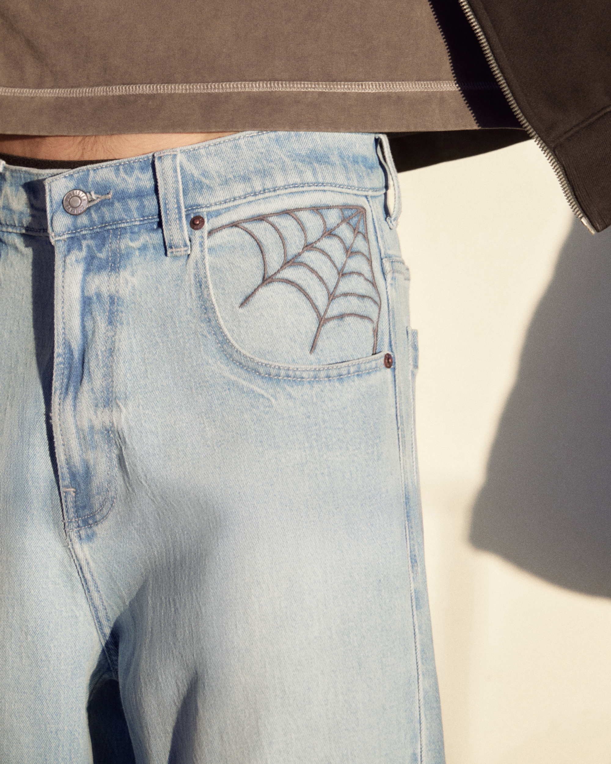 Light Wash Spider Embroidery Super Baggy Jeans
