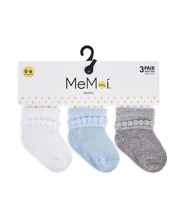 MeMoi Baby Girls 3 Pairs Bootie Cotton Blend Socks