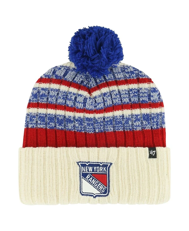'47 Brand Men's Blue New York Rangers Old Time Hockey Barn Cuffed Knit Hat with Pom