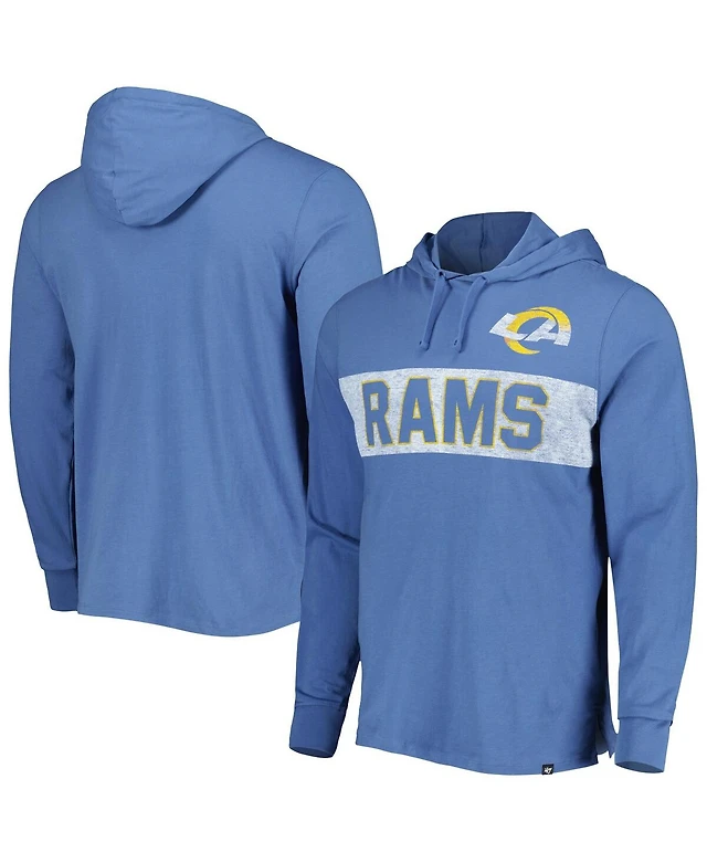 Men's '47 Brand Royal Distressed Los Angeles Rams Field Franklin Hooded Long Sleeve T-Shirt
