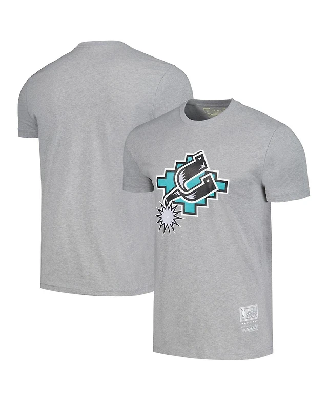 Men's and Women's Mitchell & Ness Heather Gray San Antonio Spurs Hardwood Classics Mvp Throwback Logo T-shirt