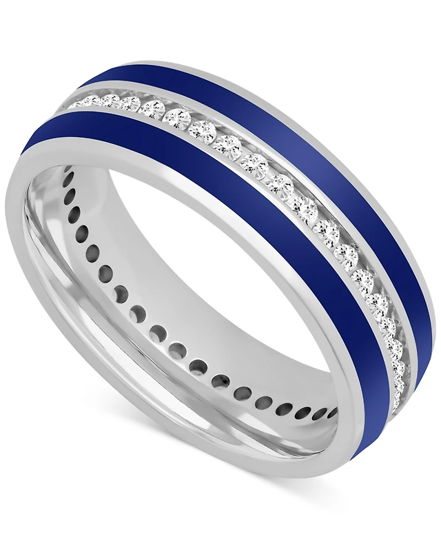 Men's Black Sapphire (1-1/3 ct. t.w.) & Ceramic Stripe Band in Sterling Silver (Also in Lab-Created White Sapphire)