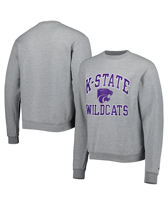 Men's Champion Heathered Gray Kansas State Wildcats Arch Reverse Weave Pullover Sweatshirt
