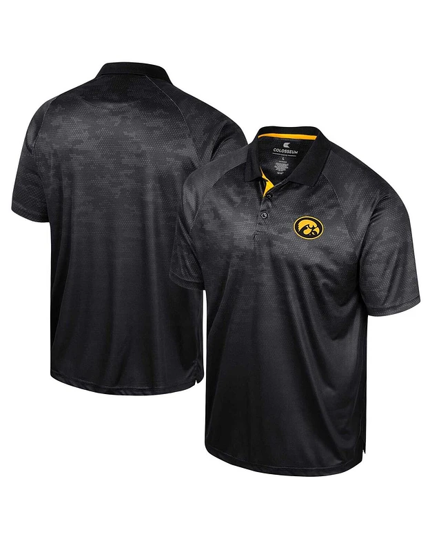 Men's Colosseum Black Iowa Hawkeyes Daly Print Polo Shirt