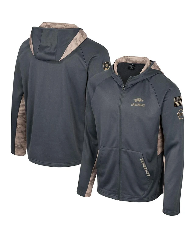 Men's Colosseum Charcoal Arkansas Razorbacks Oht Military-Inspired Appreciation Camo Raglan Full-Zip Hoodie