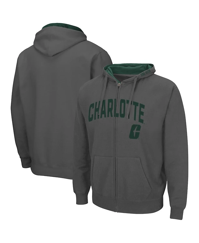 Men's Colosseum Charcoal Charlotte 49ers Arch Logo 3.0 Full-Zip Hoodie