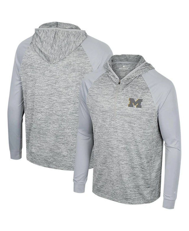 Men's Colosseum Gray Michigan Wolverines Cybernetic Raglan Quarter-Zip Hooded Top