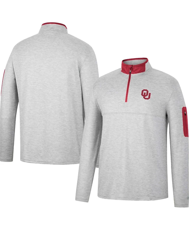 Men's Colosseum Heathered Gray, Crimson Oklahoma Sooners Country Club Windshirt Quarter-Zip Jacket
