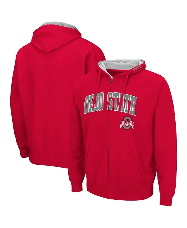 Men's Colosseum Scarlet Ohio State Buckeyes Arch and Logo 3.0 Full-Zip Hoodie