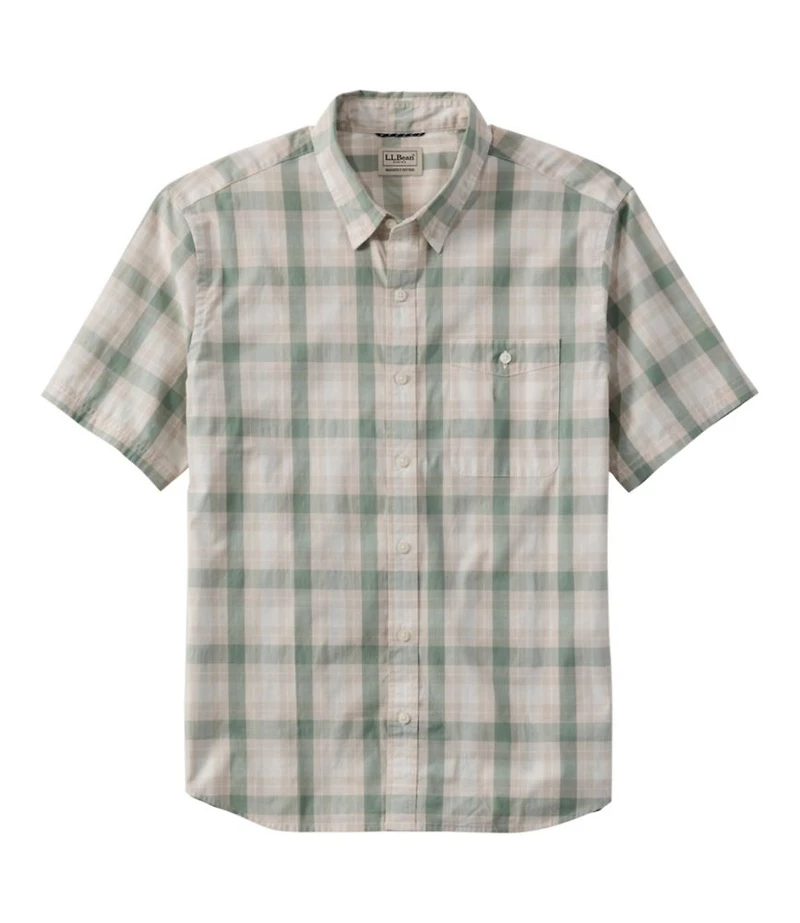 Men's Comfort Stretch Performance® Chambray Shirt, Short-Sleeve, Slightly Fitted Untucked Fit, Plaid