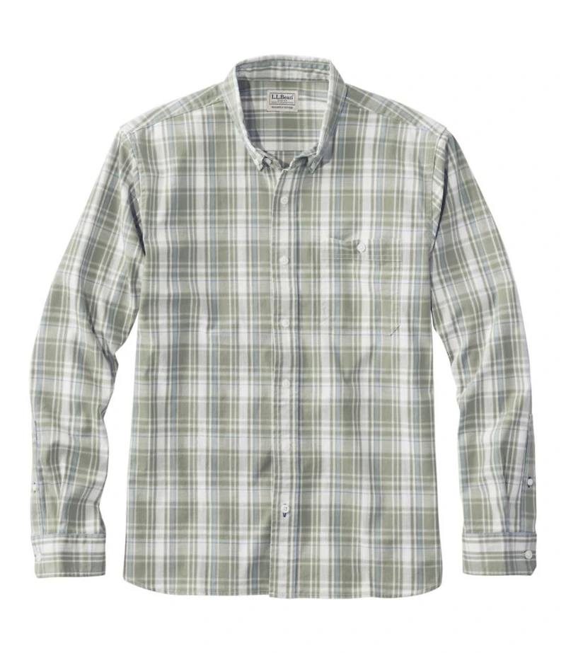Men's Comfort Stretch® Chambray Shirt, Long-Sleeve, Slightly Fitted Untucked Fit, Plaid