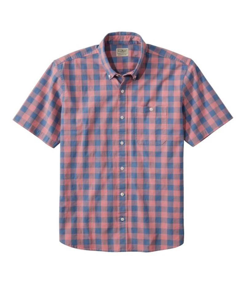 Men's Comfort Stretch® Chambray Shirt, Traditional Untucked Fit, Short-Sleeve, Plaid