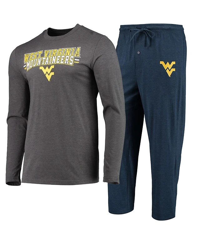 Men's Concepts Sport Navy, Heathered Charcoal Distressed West Virginia Mountaineers Meter Long Sleeve T-shirt and Pants Sleep Set