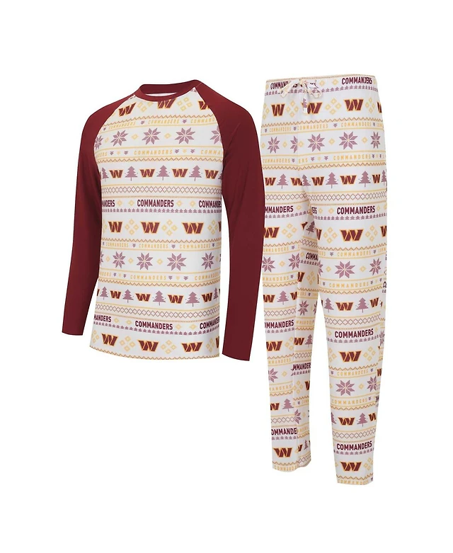 Men's Concepts Sport White, Burgundy Washington Commanders Tinsel Raglan Long Sleeve T-shirt and Pants Sleep Set