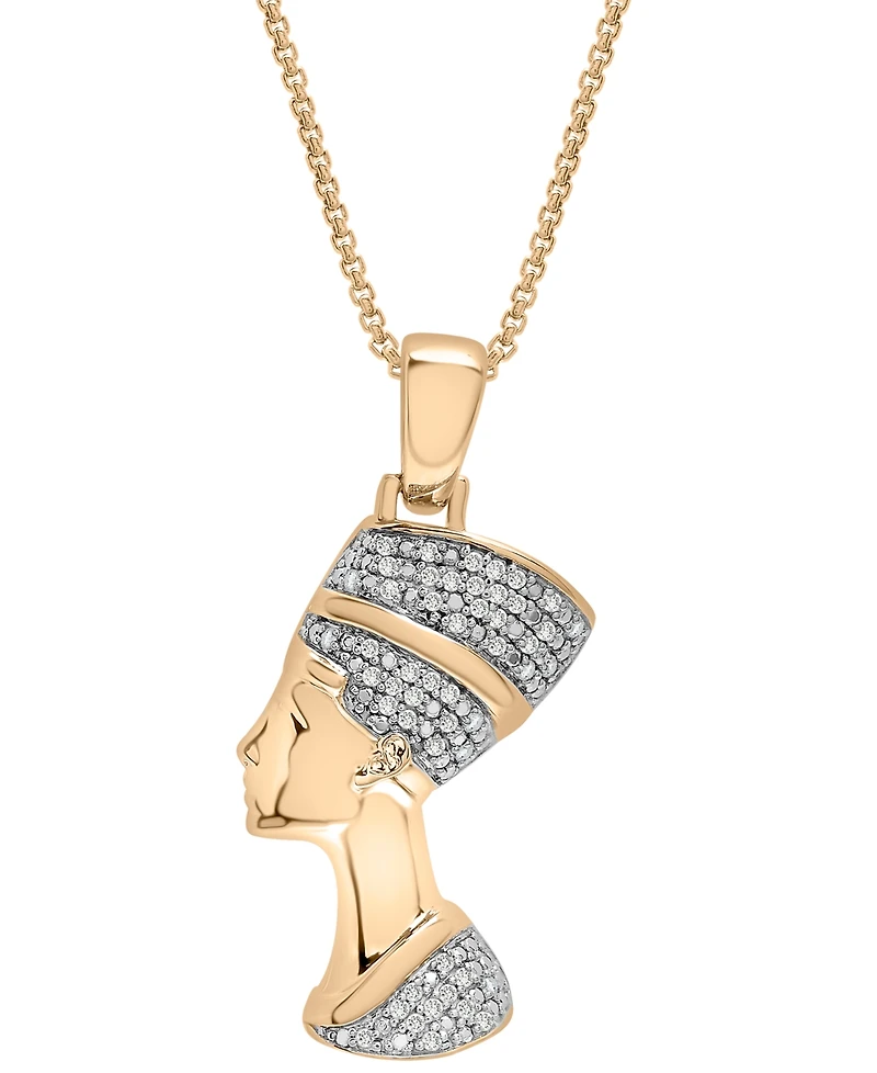 Men's Diamond Nefertiti 22" Pendant Necklace (1/4 ct. t.w.) in 14k Gold-Plated Sterling Silver