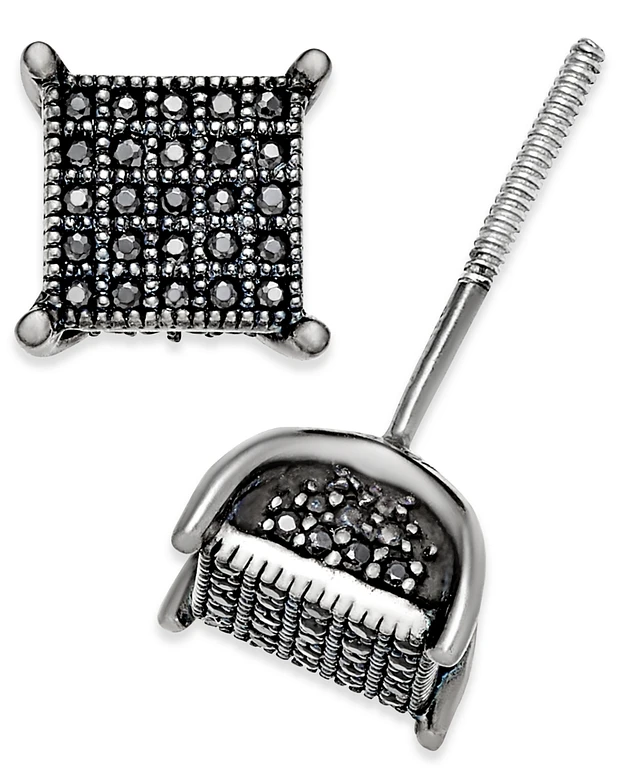 Black Diamond Cluster Square Stud Earrings (1/6 ct. t.w.) in Sterling Silver