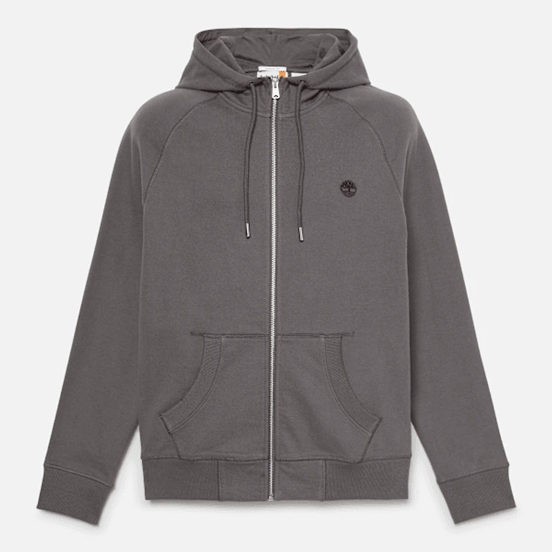 Made in an 80% cotton and 20% polyester blend with a cozy loopback finish, the Men's Exeter River Full-Zip Hoodie is crafted for everyday comfort, featuring convenient pockets, an embroidered Timberland Tree logo on the chest, and a regular fit.