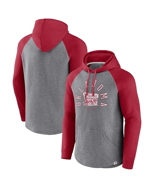Men's Fanatics Crimson, Heather Gray Oklahoma Sooners Wrap Up Raglan Pullover Hoodie
