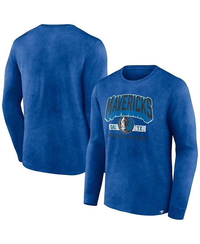 Men's Fanatics Heather Royal Distressed Dallas Mavericks Front Court Press Snow Wash Long Sleeve T-shirt