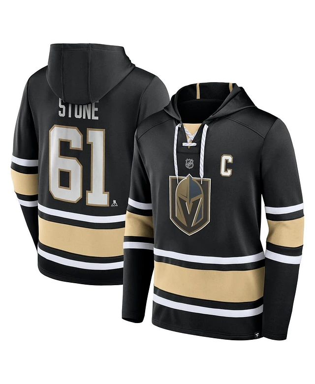 Men's Fanatics Mark Stone Black Vegas Golden Knights Name and Number Lace-Up Pullover Hoodie