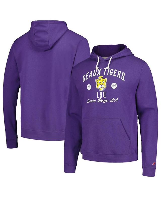 Men's League Collegiate Wear Purple Distressed Lsu Tigers Bendy Arch Essential Pullover Hoodie