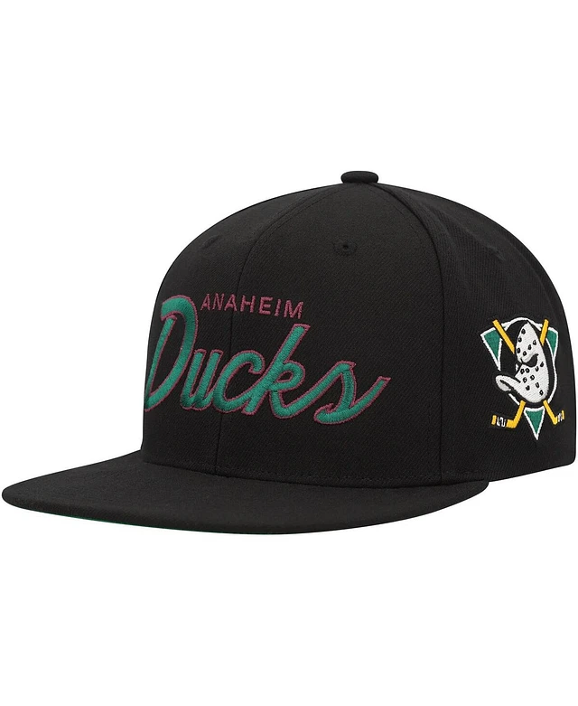 Men's Mitchell & Ness Black Anaheim Ducks Core Team Script 2.0 Snapback Hat