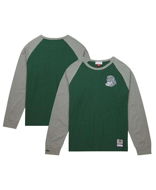 Men's Mitchell & Ness Green Michigan State Spartans Legendary Slub Raglan Long Sleeve T-shirt