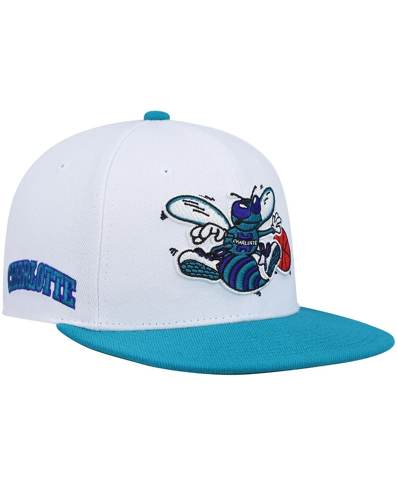 Men's Mitchell & Ness White and Teal Charlotte Hornets Hardwood Classics Snapback Hat