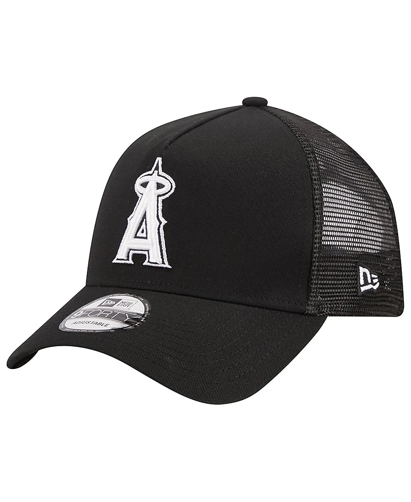 Men's New Era Black Los Angeles Angels A-Frame 9FORTY Trucker Adjustable Hat