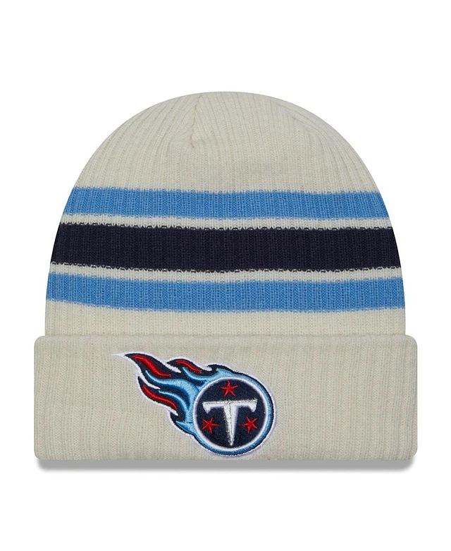 Men's New Era Cream Tennessee Titans Team Stripe Cuffed Knit Hat