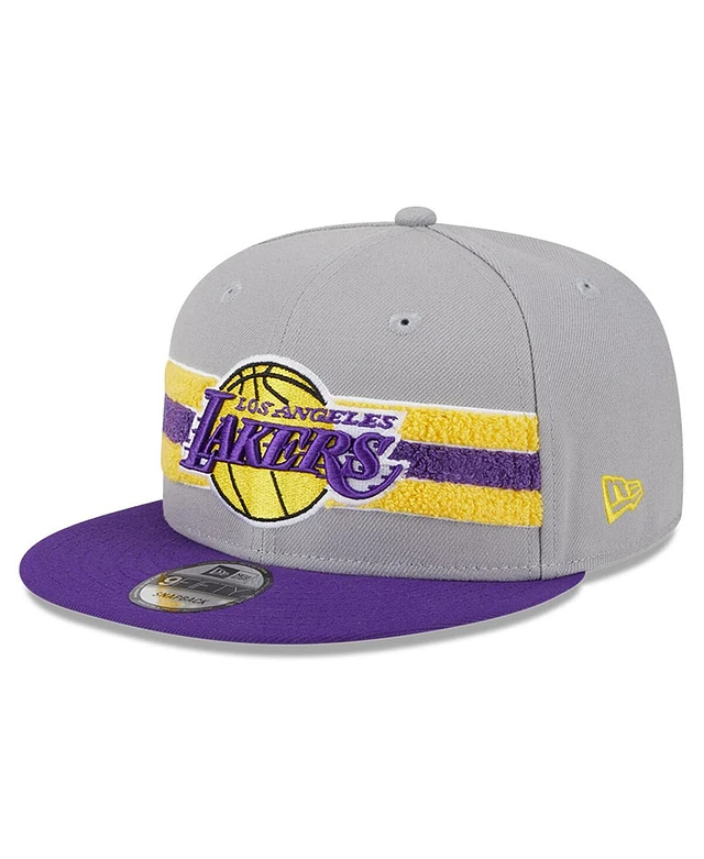 Men's New Era Gray Los Angeles Lakers Chenille Band 9FIFTY Snapback Hat