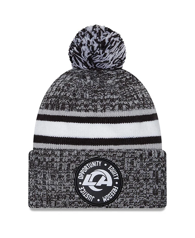 Men's New Era Heather Black Los Angeles Rams 2023 Inspire Change Cuffed Knit Hat with Pom