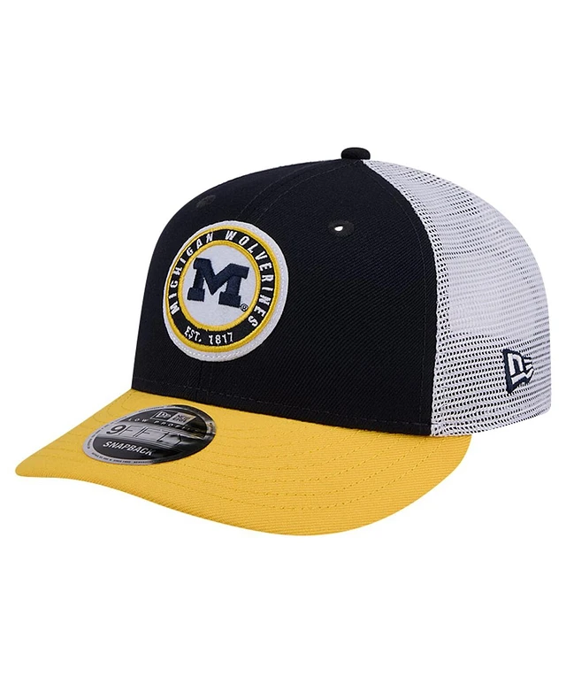 Men's New Era Navy Michigan Wolverines Throwback Circle Patch 9FIFTY Trucker Snapback Hat