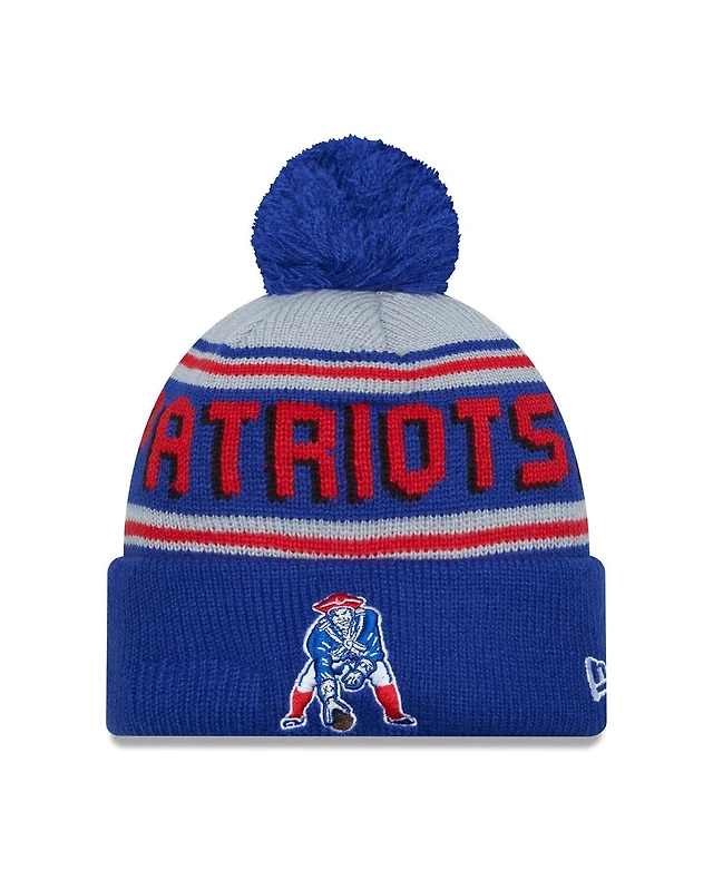 Men's New Era Royal New England Patriots Throwback Main Cuffed Knit Hat with Pom