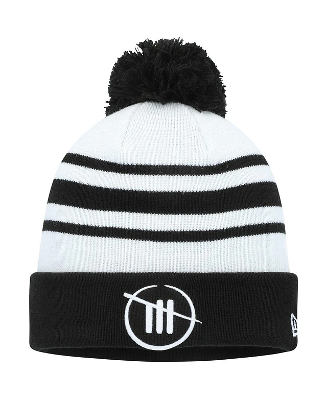 Men's New Era White, Black Trackhouse Racing Team Collection Cuffed Knit Hat with Pom