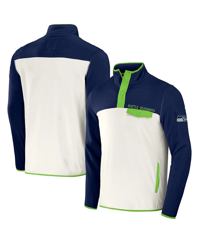 Men's Nfl x Darius Rucker Collection by Fanatics Navy, Cream Seattle Seahawks Micro Fleece Quarter-Snap Jacket