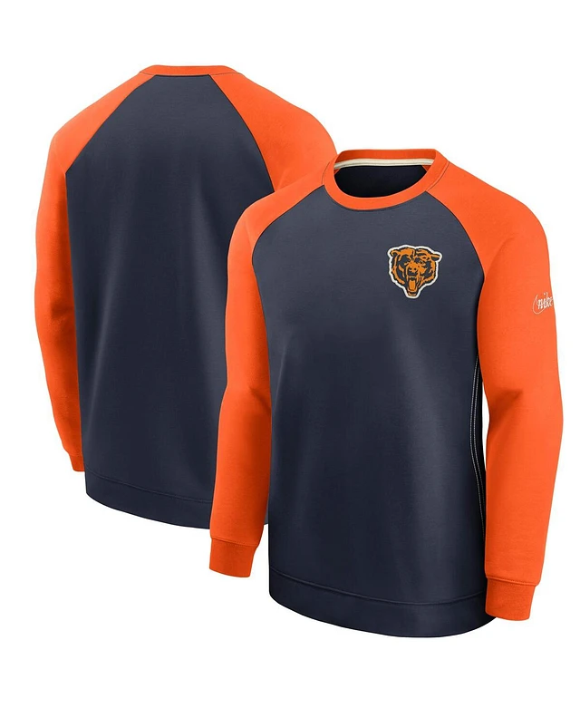 Men's Nike Navy, Orange Chicago Bears Historic Raglan Crew Performance Sweater