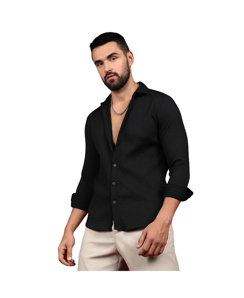 Men's Onyx Black Chain-Creased Shirt in Bloomington, MN