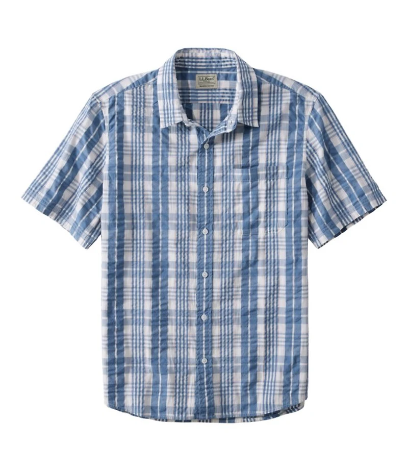 Men's Organic Cotton Seersucker Shirt, Short-Sleeve, Slightly Fitted, Plaid