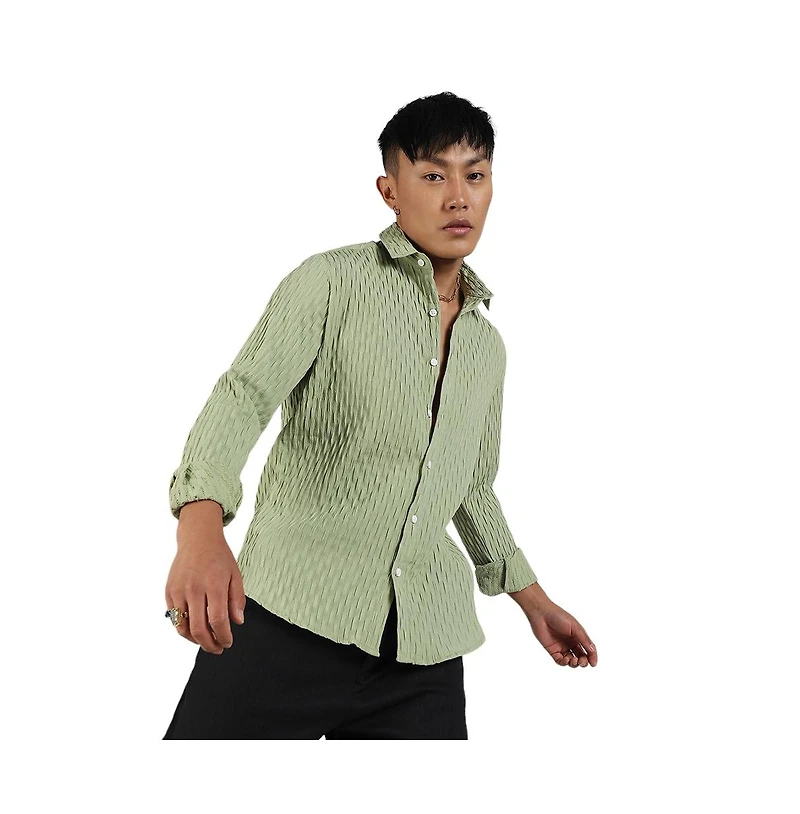 Men's Pistachio Green Crinkled-Weave Shirt