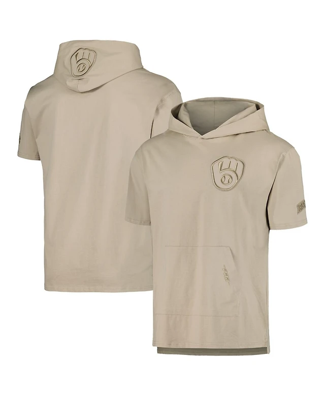 Men's Pro Standard Tan Milwaukee Brewers Neutral Short Sleeve Hoodie T-shirt