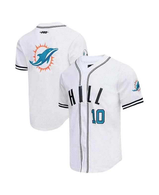 Men's Pro Standard Tyreek Hill White Miami Dolphins Mesh Baseball Button-Up T-shirt