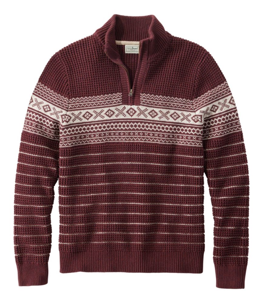 Men's L.L.Bean Organic Cotton Waffle Sweater, Quarter-Zip, Fair Isle