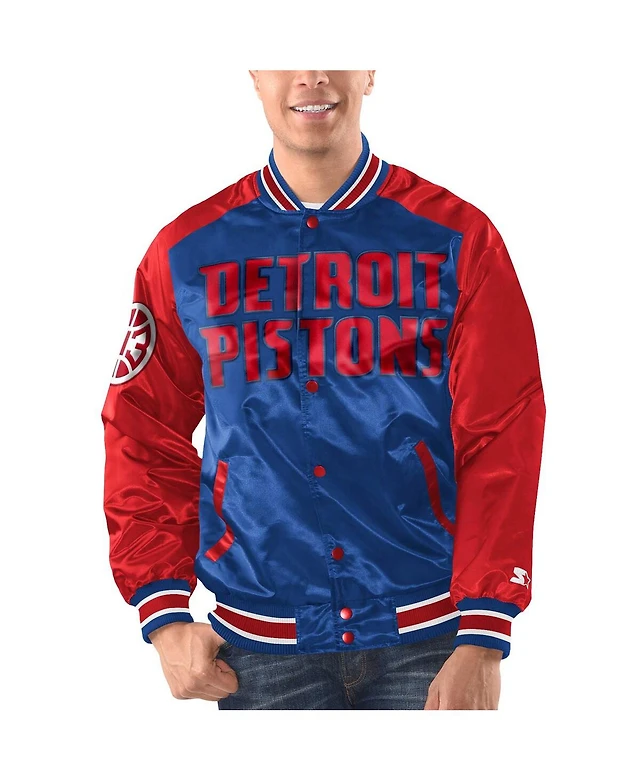 Men's Starter Royal, Red Detroit Pistons Renegade Satin Full-Snap Varsity Jacket