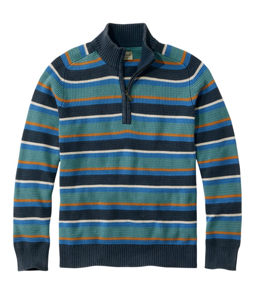 Men's Organic Cotton Waffle Sweater, Quarter Zip, Stripe