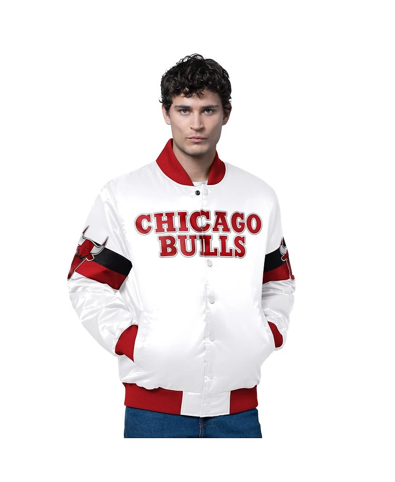 Men's White Chicago Bulls Triple Option Varsity Full-Snap Satin Jacket