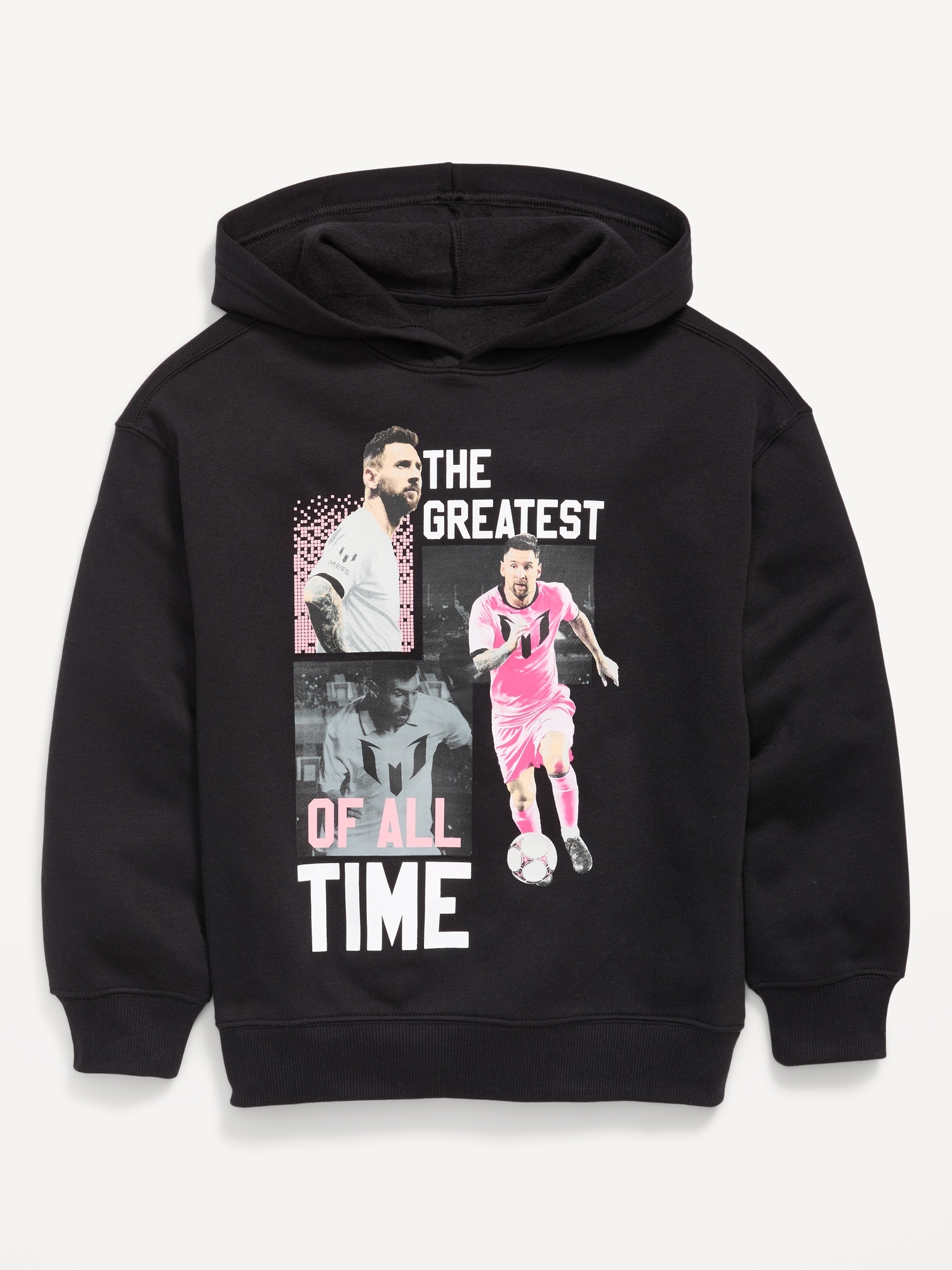 built-in hood long sleeves licensed graphic © Leo Messi Management. Used under license. oversized fit hits below waistmachine wash according to the care instruction label .